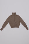 タートルネック、開襟スタイル、Vネック、前開きと、いろんな襟元を1枚で楽しめるスペシャルな欲張りデザインのニットカーディガン。