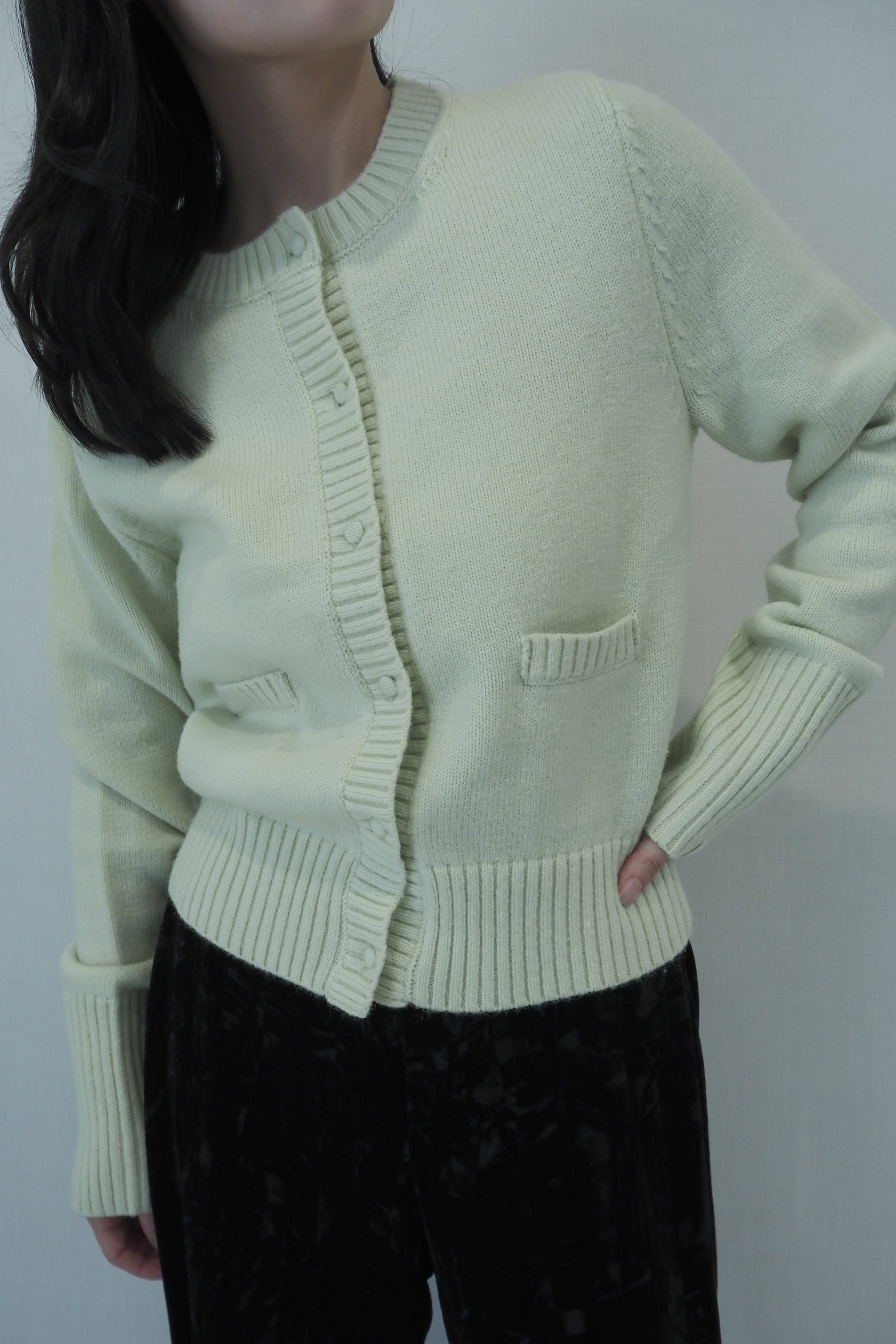 knit pocket cardigan / lime