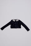 Lace collar velour cardigan / navy