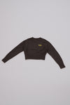 ウエストベルトに使用していたオリジナルデニムのレザーロゴパッチを、フロントにアクセントとしてオン。落ち着いたオリーブグリーンレザーは、どのニットカラーにも自然に馴染みます。